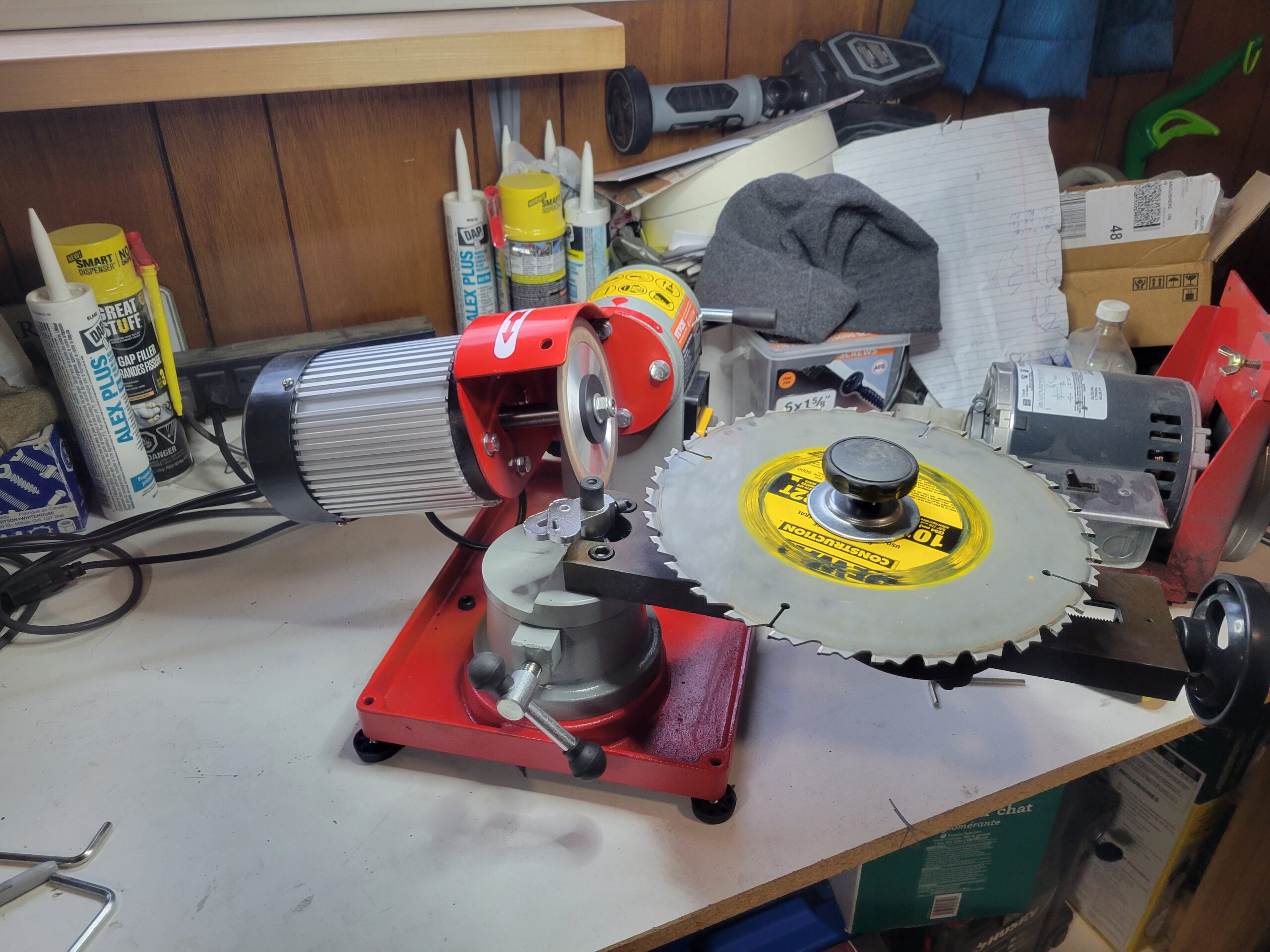 Old, dull circular saw blades, ranging in size from 3.5″ to 27″. Renew them and get clean and precise cuts again.
